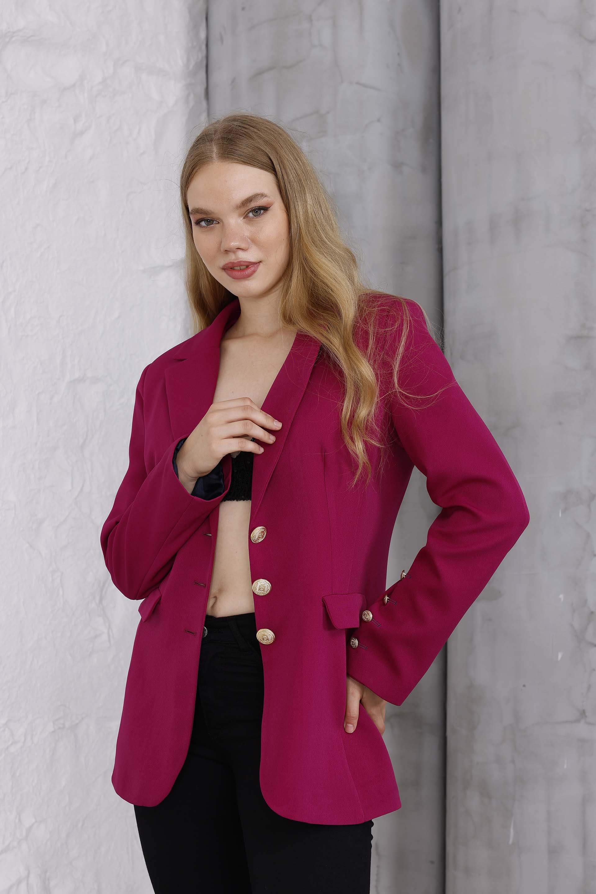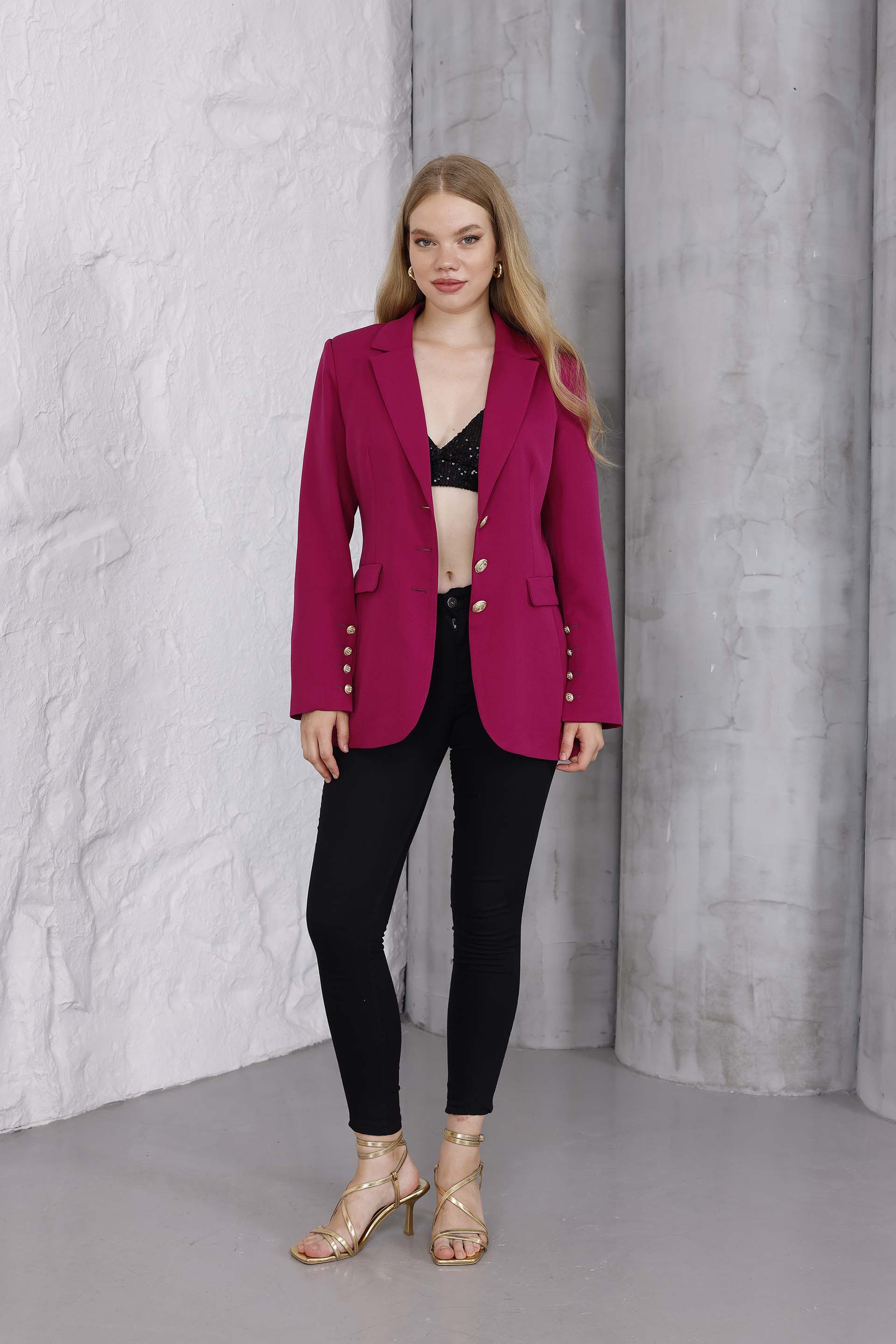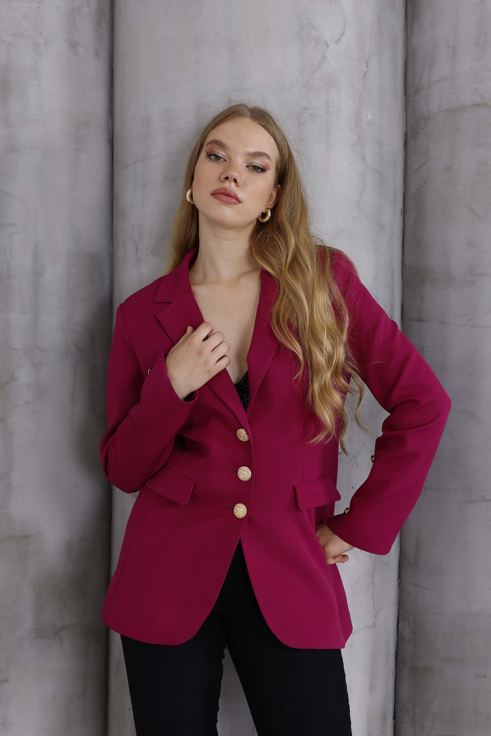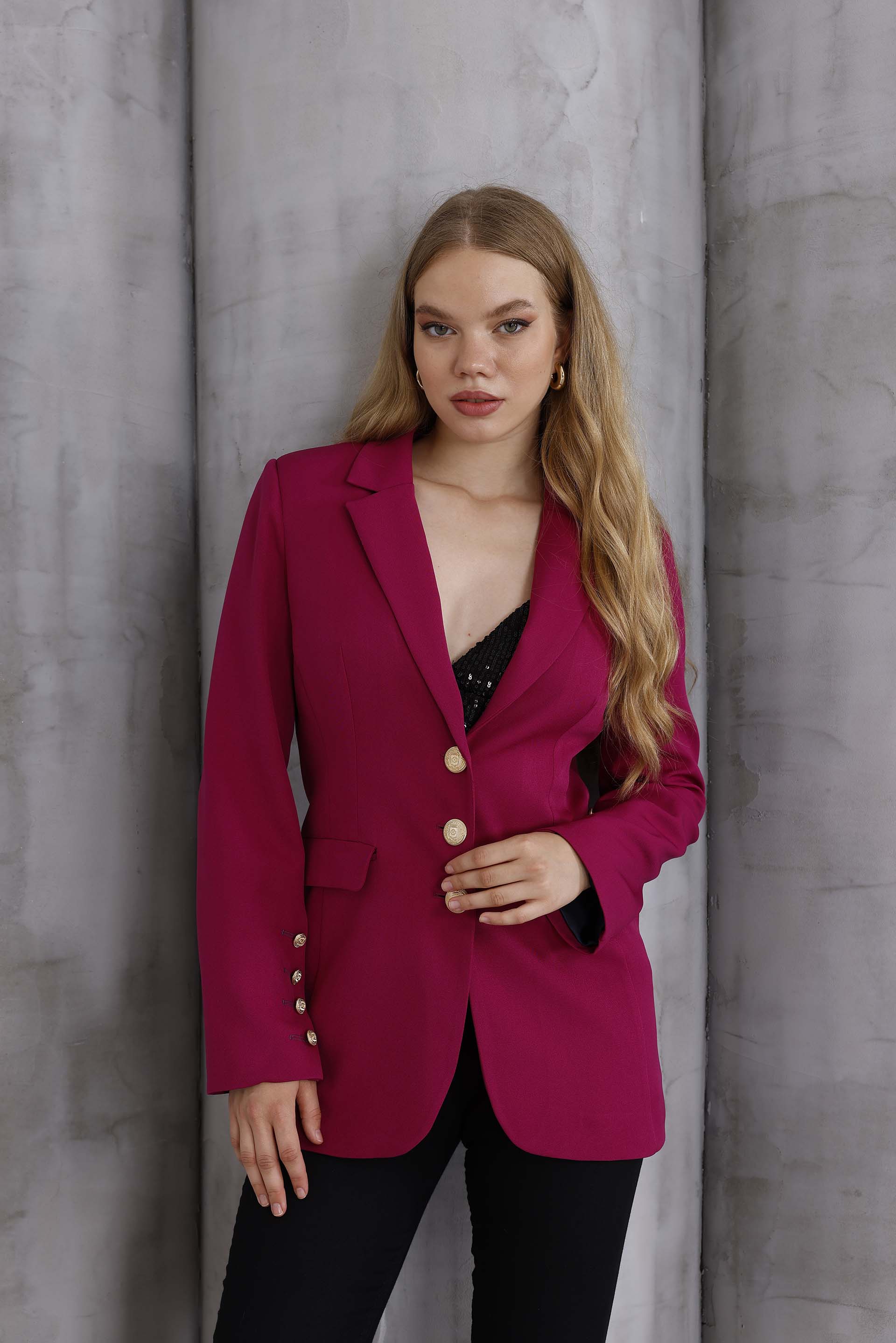 Emerald Altın Düğme Ceket Kırmızı